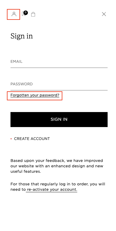1. Visit our website and navigate to the sign-in page (the person icon)